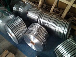 ?鋁帶的原料是純鋁或鋁合金鑄軋鋁卷、熱軋鋁卷,經(jīng)冷軋機(jī)軋制為不同厚度、寬度的薄板鋁卷,再根據(jù)用途,經(jīng)縱剪機(jī)縱向分切為不同寬度的鋁帶。