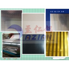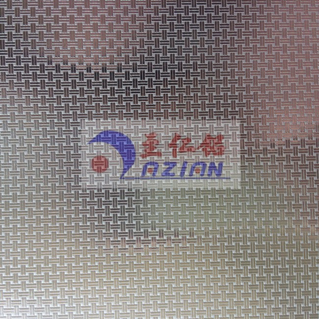 我司主要生產(chǎn)加工壓花鋁板,該花紋為編織紋花紋鋁板。該花紋鋁板是經(jīng)過壓花、剪切、氧化、封孔、自然涼干等工藝過程,形成表面帶有一層致密的三氧化二鋁保護(hù)膜的優(yōu)質(zhì)壓花鋁板。它耐酸雨腐蝕性強(qiáng)于普通不銹鋼,具有持久的光澤和美觀的花紋。防腐涂層性能穩(wěn)定,附著力強(qiáng),不脫落,耐沖擊,無毒副作用,安全環(huán)保。產(chǎn)品表面整潔、光澤。電氧化以后可以消除鋁板表面殘留油污、人工搬運(yùn)指印、輕微的劃傷、擦等。被廣泛應(yīng)用于冷柜、冷庫、冰箱、紅酒柜、太陽能熱水器水箱反光板、裝飾鋁質(zhì)品、燈飾、箱包、消毒柜、廚柜、中央空調(diào)通風(fēng)管道、室內(nèi)外裝修、機(jī)械設(shè)備外殼等行業(yè)。壓花后能夠增強(qiáng)鋁板的厚度、強(qiáng)度,可壓厚度為0.15mm—3.0mm、寬度最寬1.4m的鋁板。壓花之后鋁板可加厚0.1mm-0.25mm。.尺寸可按客戶要求生產(chǎn)。