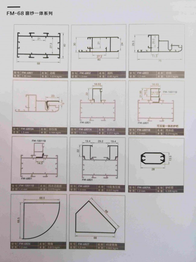 | 產品規格: | 68窗紗一體門窗鋁材 | ||