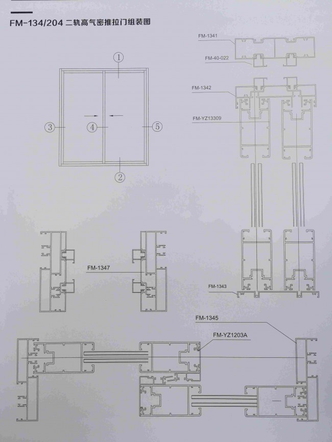 產品型號:130/204隔熱斷橋二軌高氣密推拉門鋁材