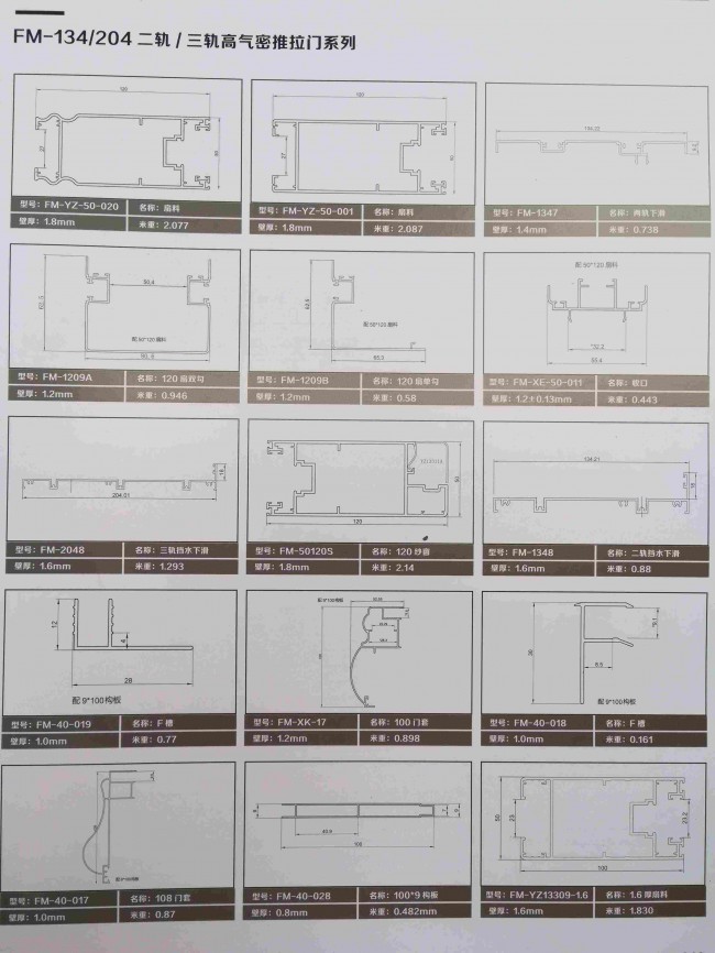 佛山南海大瀝鋁型材廠130/204隔熱斷橋二軌高氣密推拉門鋁材