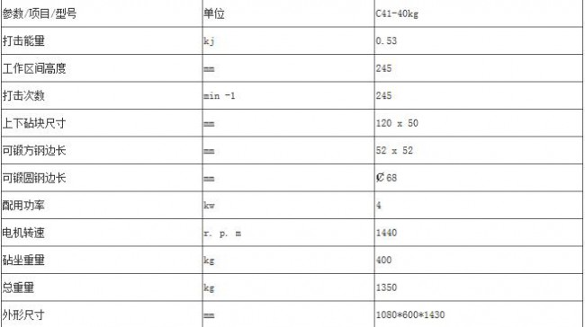 | 產品規格: | C41-40KG分體式空氣錘 | ||