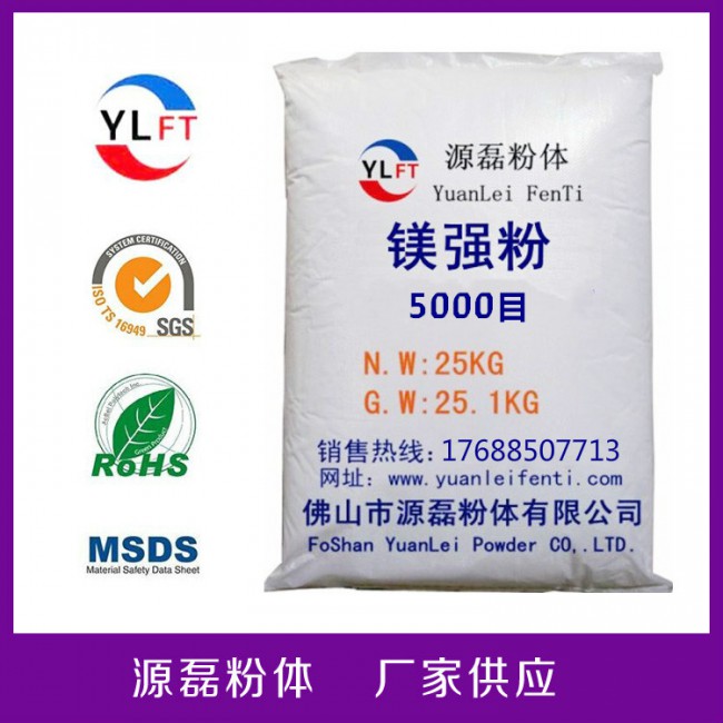 用途(1)鎂強粉應用于改良橡膠塑膠樹脂之壓模,壓延,押出,射出等加工性能,可替換部分較昂貴之膠料10~15\%來降低原料成本。(2)鎂強粉用在橡膠塑膠樹脂中之增膠劑,尤其是在發泡產品中可助其加工成型,即減少聚合體分子間之摩擦力,使分子鍵因而容易移動,因此在加工中不論是壓模,壓出成型,將可促使縮短成型時間提高生產力。(3)鎂強粉在膠料樹脂中,可改變產品之物性,增加張力強度、耐沖擊強度,剪切強度,擾曲強度,硬度、降低變形、伸張率、墊膨脹系數等。(4)鎂強粉與膠料混練后,壓延或押出8m/m~10m/m厚度之薄片,有平滑且非常美好的表面,并能迅速減少氣泡。(5)鎂強粉在油漆,涂料方面,耐爆嗮、抗高溫,在紫外光照射下不變色,能長期保持原有的光澤與色彩,有較好的耐酸堿腐蝕的性能,且耐水性好,耐污沒、耐老化性能較強、耐磨,耐蒸汽和化學穩定性,及較強阻燃性能。