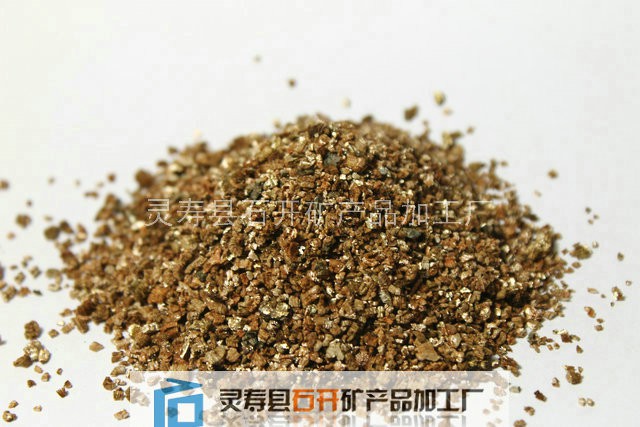 蛭石片經過高溫焙燒其體積可迅速膨脹6-20倍,膨脹后的比重為60-180kg/m3,具有很強的保溫隔熱性能。蛭石加