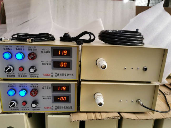 高壓靜電發生器采用內置式自動保護線路,高壓塊電子元件固封確保高壓輸出穩定耐用。當靜電輸出遇到短路或漏電電流達到設定保護值時機器會自動保護停機及時報警,需要重啟才能恢復工作,有效地確保設備運行及作業安全。 盈暉靜電發生器穩定性好,輸出無級調節,設備可長時間連續運行,適用于DISK圓盤型自動靜電水性、油性噴漆設備使用。(YH120KV干式和YH150KV油式兩款供貴公司選用) 廣泛應用于:貼膜、金屬或木制門窗、樓梯扶手、吸附、電子、分選、廚具、紡絲、藤具、機車、自行車、電動車、汽車、家電、電鍍噴油、植絨、小五金、樂器、實驗室靜電試驗、建筑裝飾材料等噴漆行業。 工作電壓 :220V ±10 50HZ (AC)。 輸出電壓 :10-120KV /150KV(負極 無極調節)。 輸出電流 :10-100UA /200UA。 消耗功率 :50W。 感謝您對我們的支持!如需對產品更多了解請致電盈暉。聯絡方式:13376568169、0758-2702681、傳真:0758-2702680、QQ:1793173745 石小姐。
