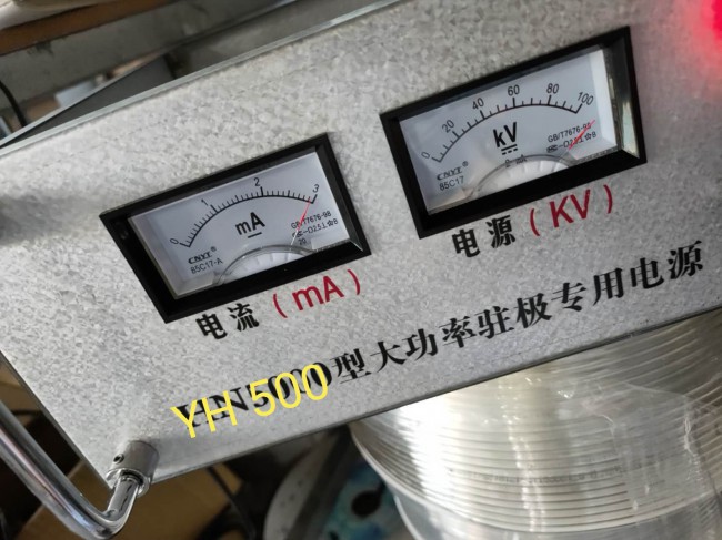 使用前必須把控制電箱牢固接地,高壓箱地線與滾筒鐵架相連接。靜電機用架子放好,與滾筒鐵架保持距離50公分以上,以免高低壓相互干擾。靜電駐極機周邊設備應接地良好。 靜電機分控制電箱和高壓輸出電箱兩部分。控制電箱接地線!!,高壓箱地線接上滾筒鐵架與地線相通。 靜電機放好后用5芯數據線把控制電箱和高壓輸出電箱連接。 (航空插頭與插座有個缺口,對上缺口插上旋上羅母固定)