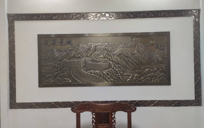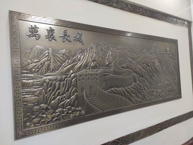 日常生活中不是缺少美,而是缺少創造力的美,只要有創新,很枯燥無趣的一樣東西也可以打造得生命力十足。純銅純鋁雕刻屏風背景墻,銅浮雕壁畫的設計,雕刻線條的點綴,讓原本單調的壁畫多了一份典雅和魅力。