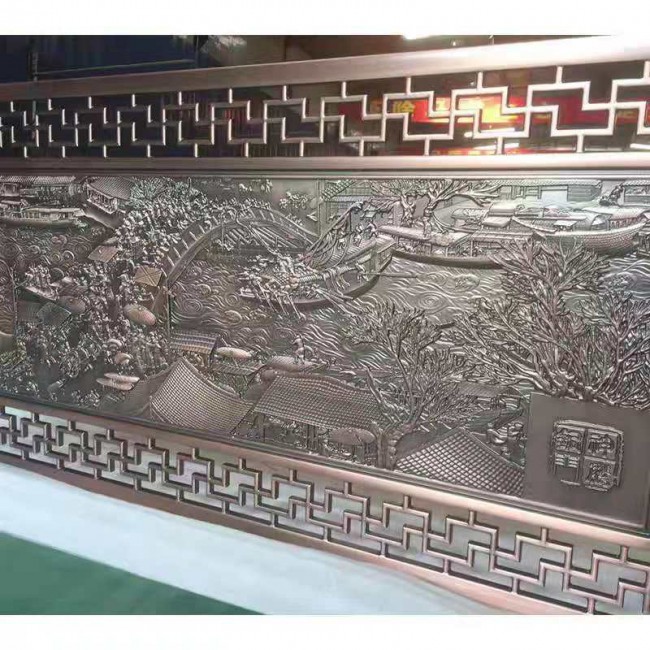 鋁板浮雕壁畫仿古銅電鍍裝飾背景墻制造廠家廣東鋁雕屏風廠家