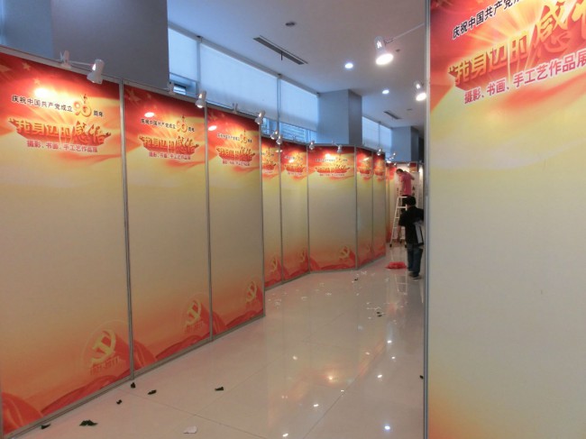 從20世紀起人們逐漸用鋁制作屏風展示板代替了笨重的木制屏風展示板了。購買展覽屏風器材選我們佛山鑫淼展材哦,我們生產的每個展示屏風都是貨真價實哦,外框都是自己工廠開模做的鋁材,板材是外國進口的板子哦。使用這一款鋁制的屏風展示架造價比較低,造型多變,購買靈活,想怎么配就怎么哦,而且不生銹,防水,可多次重復使用,購買一次,可以使用幾年哦,超劃算哦