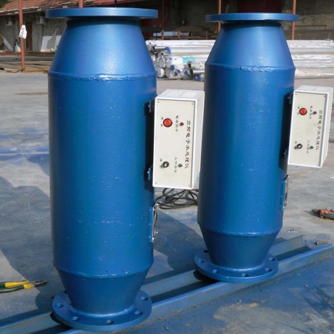 電子水處理(電子除垢儀)技術,是通過高頻電磁場、高壓靜電或低壓電場的作用,使溶解在水中的正負離子(垢分子)被水分子包圍,通過磁場、電場作用,降低離子間引力,減少有效碰撞次數,使帶電離子結晶習性發生改變,不易發生化學反應。由原來易吸附在容器表面的斜方晶系晶體,變成不易吸附的三斜晶系的針裝晶體,從而在管壁上無法結垢,達到防垢的目的。由于水分子在磁場、電場的作用下減弱了垢鹽離子的結合,使垢鹽離子形成開垢表面,成為水合離子進入水中,使受熱爐壁、管壁上原來的水垢逐漸軟化、疏松、自行脫落,起到除垢的作用。 水中的細菌、藻類細胞因高頻電磁場、電場的作用,使細胞內原生質產生電離,影響細胞的正常代謝,導致菌藻死亡,起到殺菌、滅藻的作用。