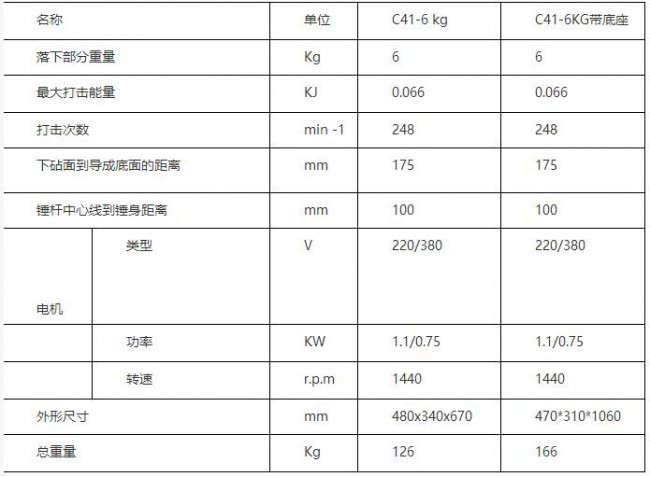 | 產(chǎn)品規(guī)格: | C41-6kg空氣錘 | ||