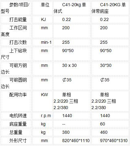 | 產(chǎn)品規(guī)格: | C41-20kg單體式空氣錘 | ||