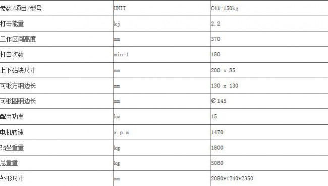 產品規格:C41-150kg空氣錘