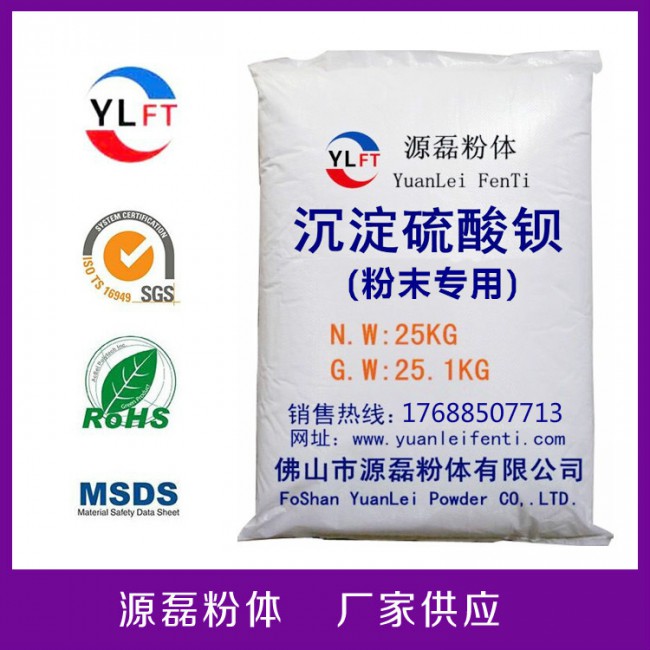 具有化學惰性強。穩定性好,耐酸,耐堿,硬度適中,比重高,白度好等優點,可作為白色填料。也可作為填充劑用于橡膠和造紙,可增加其重量和光滑程度。在橡膠,塑料,造紙,油漆,油墨,涂料等作業用作填料,增光劑,加重劑。在玻璃制品用作澄清劑,能起到消泡和增加光澤的作用??勺鳛榉婪派渚€用的防護壁材。還用于陶瓷,搪瓷,香料和顏料等行業。也是制造其他鋇鹽的原料。