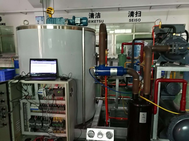 大型片冰機系統整個制冷系統清潔衛生,系統回油穩定、蒸發效果好,控制系統采用PLC控制,韓國LS電控元件,蒸發器部分其高度精密的加工保證了它的穩定運行。