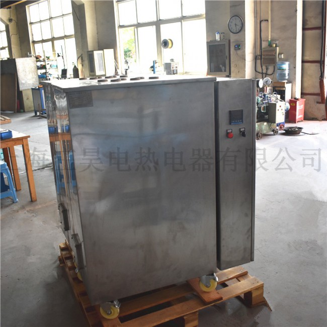 高溫電烤箱為內外雙層結構,殼體為角鋼薄鋼板,內外雙層殼體之間填充有纖維物質。高溫電烤箱使用的纖維物質能起到保溫的作用,形成可靠的保溫層。高溫電烤箱配置有熱風循環系統及溫度測量與控制系統。