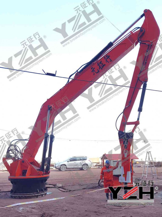 YZH品牌的固定液壓破碎機械設備,主要可以應用于地下礦井漏斗、地上礦格柵、冶金爐口,破碎機進料口等,可以破碎和清除大塊堅硬巖石、礦石以及鋼包爐渣等,YZH品牌的液壓破碎工作臂系統效率高,破碎力強,操作維修簡便等特點。固定式液壓破碎機是由液壓站、回轉支撐系統、大臂小臂,破碎錘以及控制系統組成。