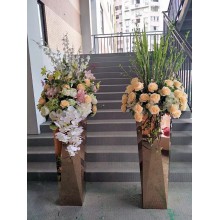 不銹鋼花盆系列,適用于現代豪華建筑裝飾,其產品造型新穎獨特、美觀大方、堅固耐用、不易破碎。該產品美觀時尚,外表更加高貴、華麗、氣派,適用于城市休閑街、家庭居室、賓館酒店、機場大廳、火車站、地鐵輕軌站、商務樓、商業購物中心、會展中心等擺設。不銹鋼花盆表面效果有拉絲、噴砂、鏡面、亞光、拋光、烤漆等。有多種款式及規格供客戶選擇,并可按客戶圖紙及要求定做。