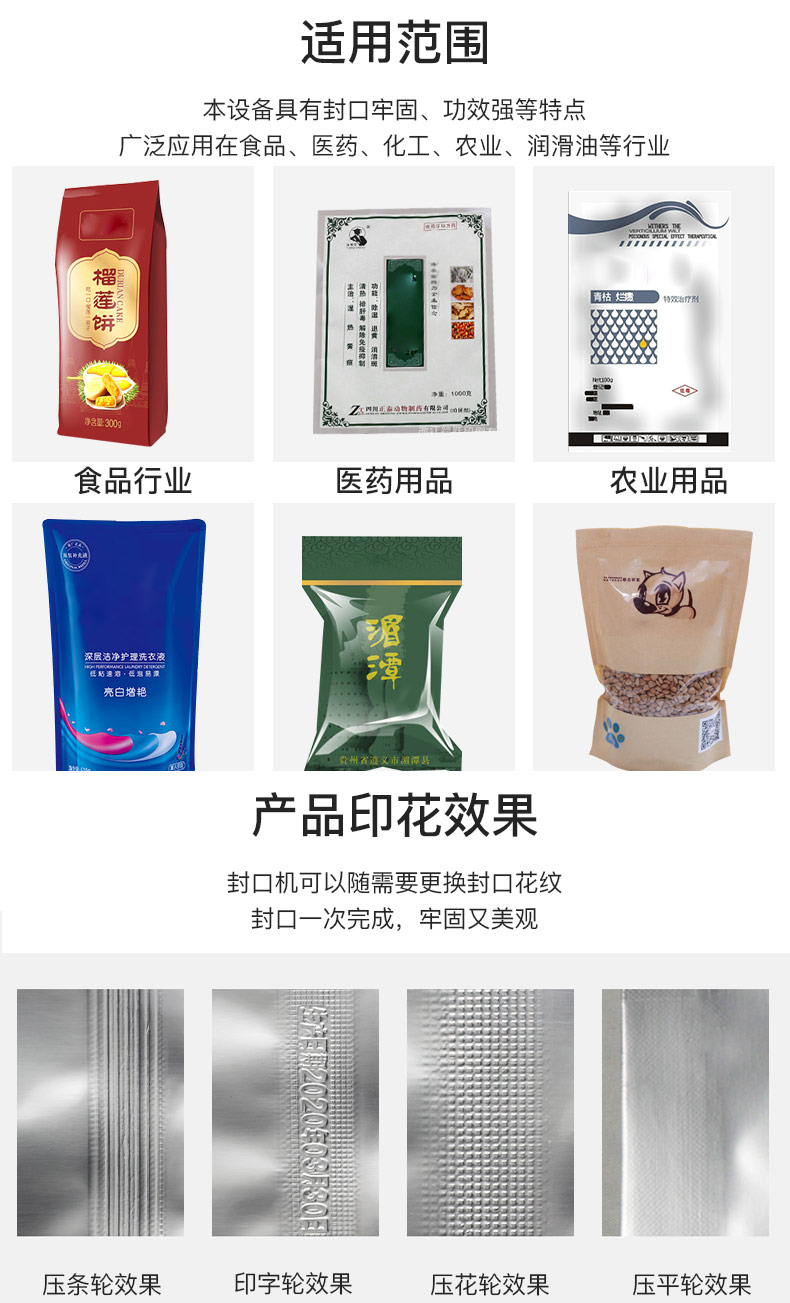 KD-770型自動塑料袋封口機可用于食品袋、醫藥、實驗室、日用化妝品、土特產、化工產品、電子產品、蔬菜種子、服裝、電子原件、小五金、土特產等產品的包裝封口。廣泛應用于工廠、商店、零售部門,服務性行業及科研軍工部門等各行業。