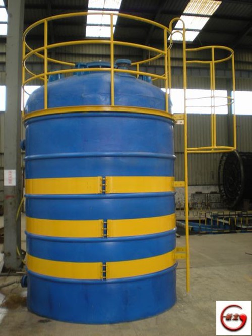 二. 鋼襯塑料(聚乙烯)貯運容器、反應設備系列:鋼襯塑(龜甲襯里----鋼、網、塑三合一)是鋼塑復合系列產品的精華。它是將鋼網(龜甲)焊接于鋼體表面,以聚乙為原料,采用旋塑工藝(滾塑技術)一次整體成型于鋼體表面,由于鋼網(龜甲)與聚乙烯為一體且鋼網焊于鋼體表面,使聚乙烯難以脫離鋼體表面。因而是一種極為優異的耐腐蝕產品。產品內襯面平整、光滑、堅固,與傳統的鋼襯塑料板儲槽、鋼襯玻璃鋼貯槽相比,具有更良好的耐腐蝕、不滲漏、不剝離、耐磨損、壽命長等優點,是裝運腐蝕液體的理想儲運容器,可應用于100℃以下的汽車運輸槽罐、低壓罐、真空罐、反應釜、交換柱、酸洗槽、電鍍槽等。